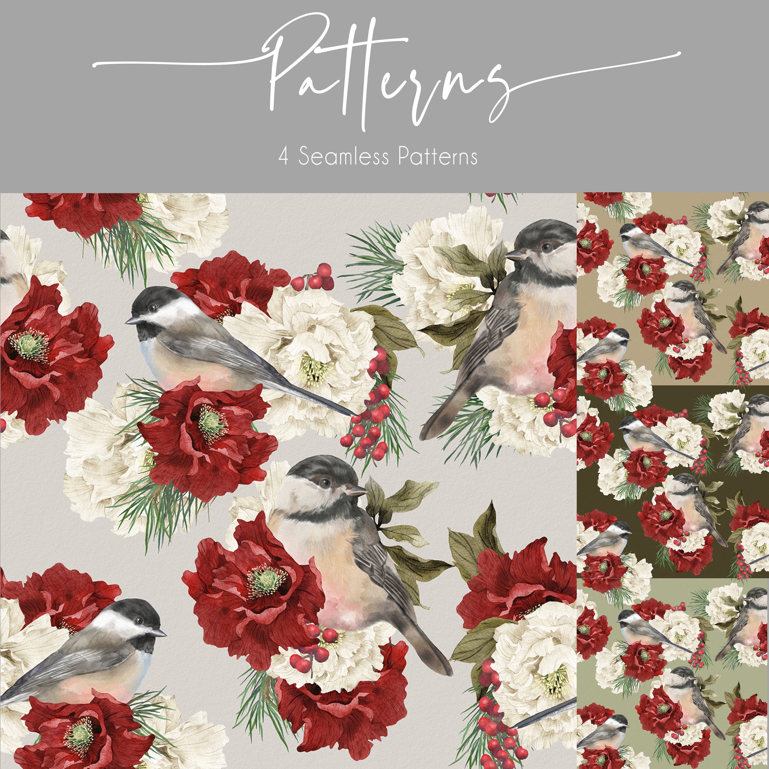 These adorable winter chickadees were painted in a watercolor style using Procreate. I am so happy to be able to offer these to you for your design projects, both personal and commercial.