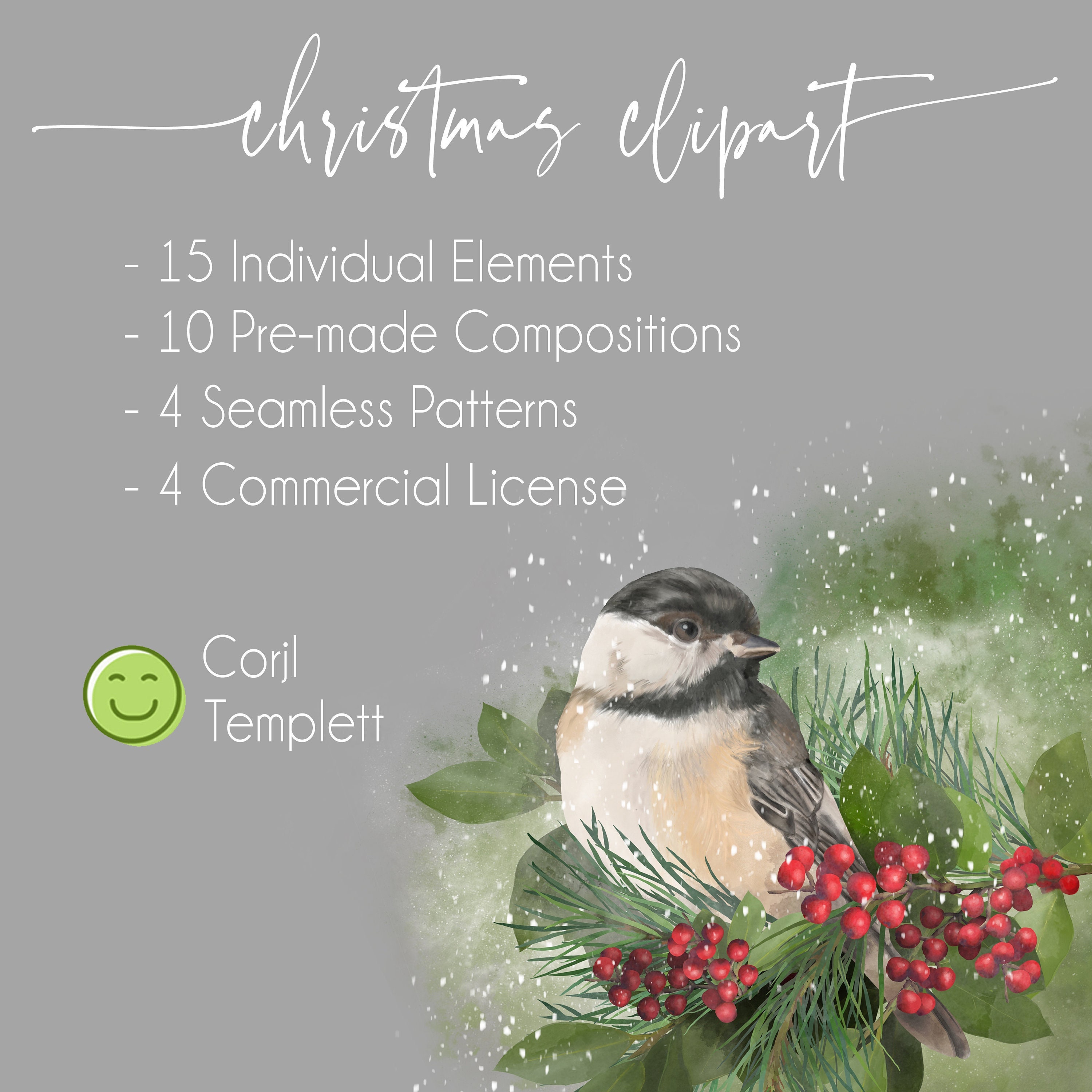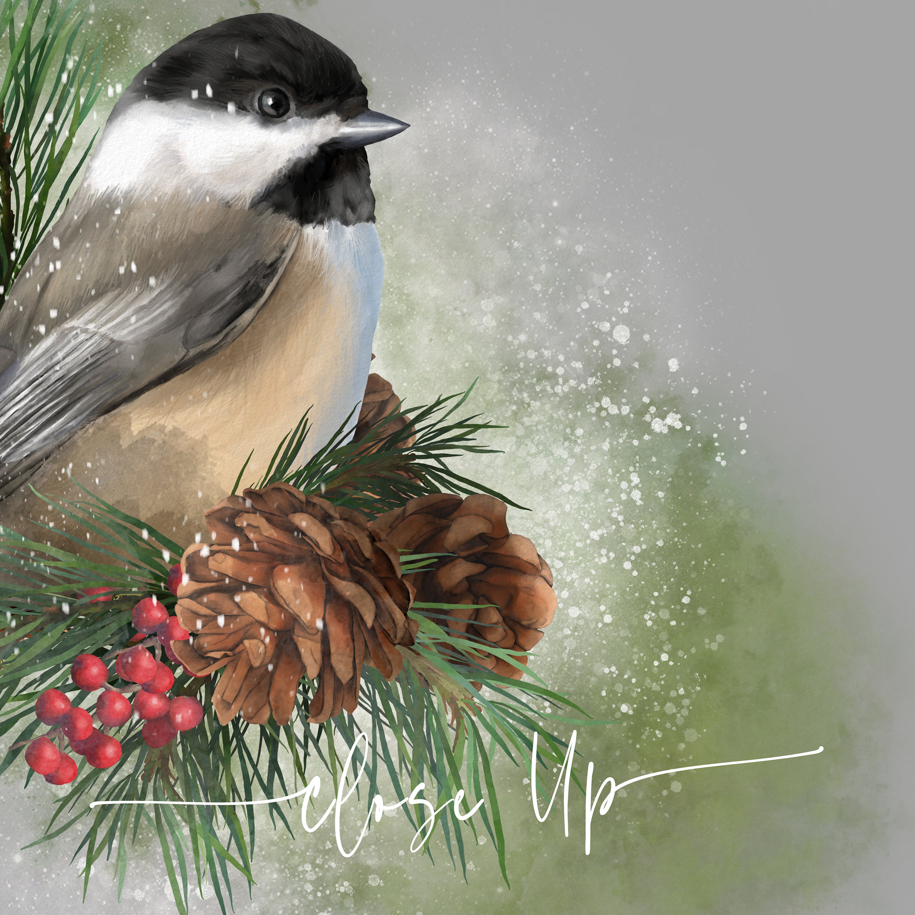 Digital Illustration | Commercial License | Christmas | Chickadee | Winter | Design
