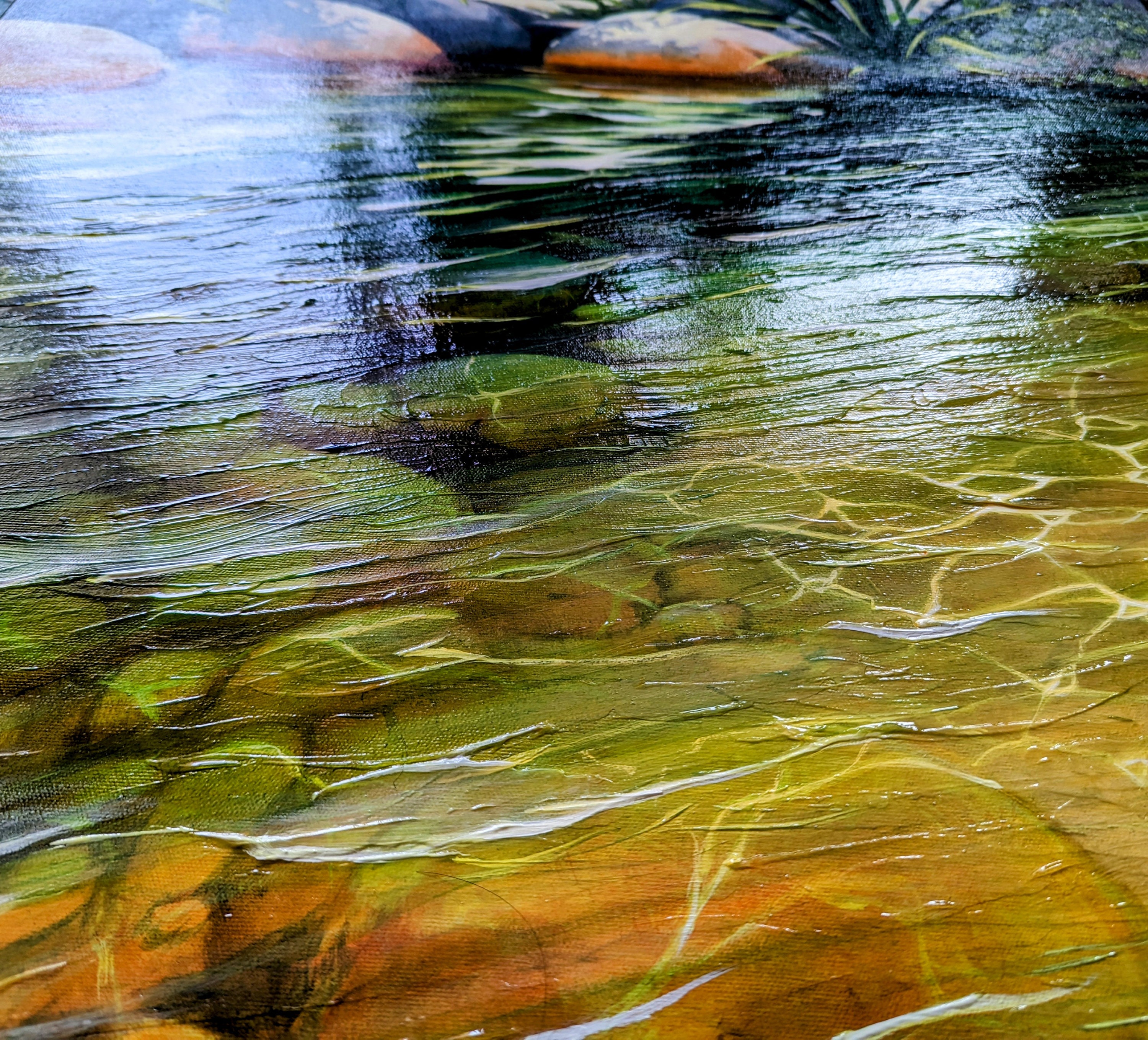 This listing is for an original painting, not a print. This piece is part of my Summer "Tranquil Water" series called "Waltzing Sunlight".
