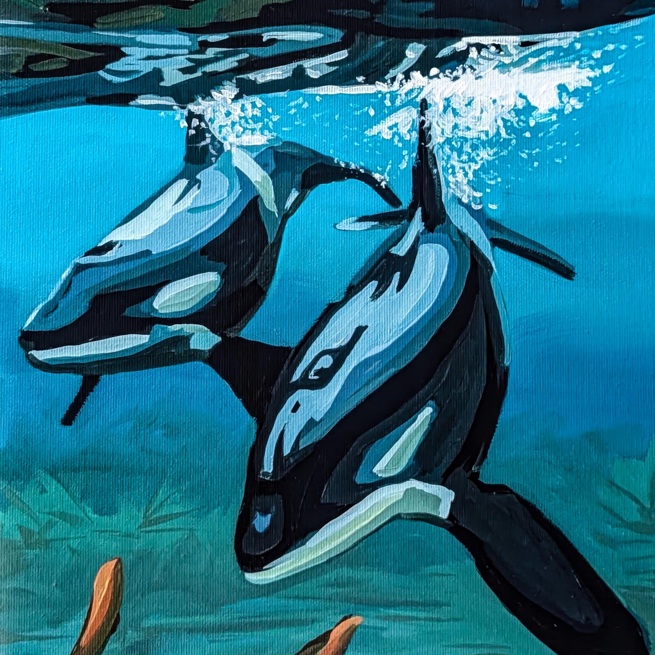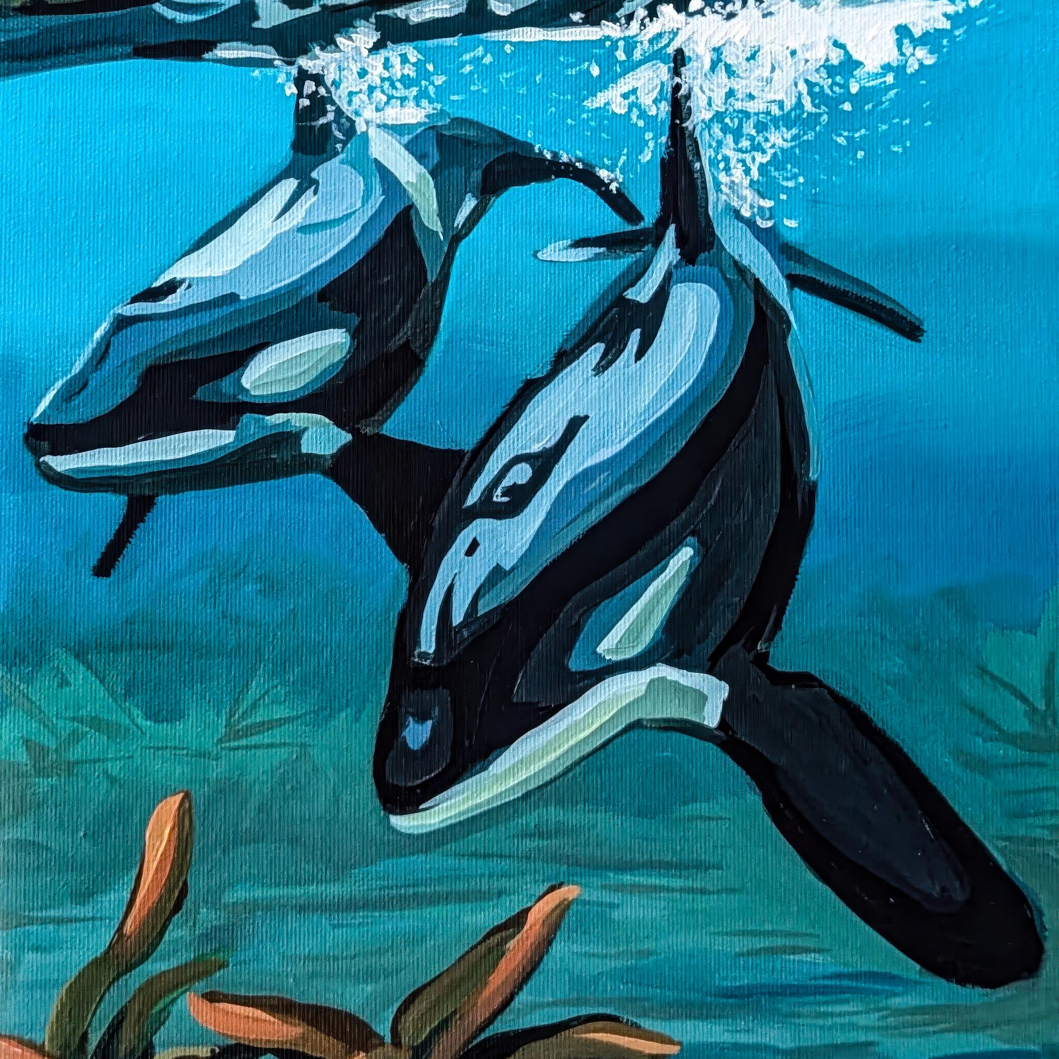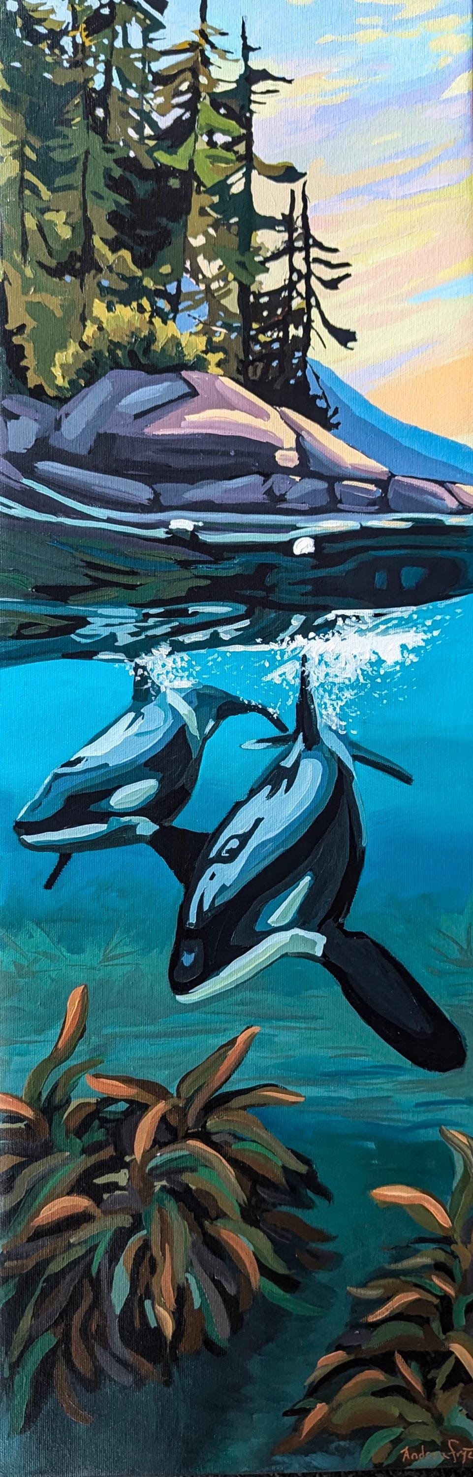 Original orca whale painting inspired by the coastal waters of the Pacific Northwest. This marine wildlife artwork captures the beauty, intelligence, and movement of orcas in their natural environment. A striking statement piece for collectors of ocean art, wildlife painting, and contemporary coastal decor.